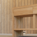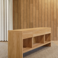 El acabado de la Credenza para TV G.24 destaca por sus tonos cálidos y su textura natural, evocando una sensación de tranquilidad y conexión con la naturaleza.