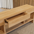 La Credenza para TV G.24 presenta una estructura sólida y bien definida, con amplios compartimentos abiertos y cajones, ofreciendo almacenamiento eficiente para dispositivos electrónicos, consolas, y elementos decorativos. La configuración inteligente de sus espacios permite una distribución ordenada y práctica, proporcionando tanto funcionalidad como estética.