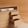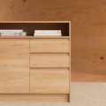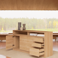 La credenza Rodonita es perfecta para agregar orden a la vista, su repisa inferior abierta permite un fácil acceso a objetos importantes y los cajones inferiores permiten mantener un ambiente organizado y protección para multiples objetos.