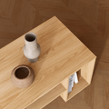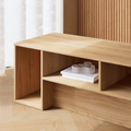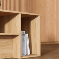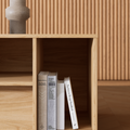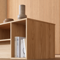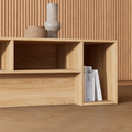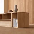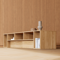 El mueble de TV Quilla, destaca por su diseño minimalista y funcional. Ofrece varias repisas abiertas ideales para almacenar y exhibir dispositivos electrónicos, libros y decoraciones. Su estilo elegante y moderno permite que se integre armoniosamente en cualquier ambiente, añadiendo un toque de sofisticación sin recargar el espacio.