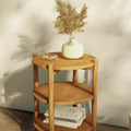 Our Livelli combines the charm of wood with a unique design of three levels of circular shelves, supported by cylindrical legs that give it an elegant and modern touch. Its approximate measurements of 52 cm wide, 52 cm deep and 65 cm high make it a versatile piece of furniture that adapts to any corner.