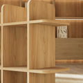 Compuesto por múltiples compartimentos que se entrelazan en una configuración simétrica y bien definida. Los divisores verticales y horizontales crean una serie de nichos que son ideales para organizar libros, revistas, y objetos decorativos. La simplicidad de su diseño permite que se integre armoniosamente en diversos ambientes, aportando un toque de sofisticación sin sobrecargar el espacio.