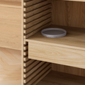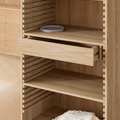 La Repisa Alta Livellato destaca por su diseño ajustable y versatilidad. Con cuatro cajones intercambiables, permite personalizar la configuración según tus necesidades, ofreciendo una solución de almacenamiento flexible y elegante.