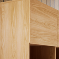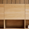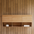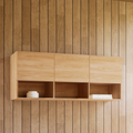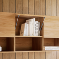 Omega-4, es una repisa flotante cuenta con varios compartimentos y puertas abatibles, ideales para almacenar y exhibir libros, decoraciones y otros artículos esenciales. Su configuración elegante y moderna permite que se integre armoniosamente en cualquier ambiente, añadiendo un toque de sofisticación sin recargar el espacio.
