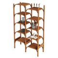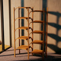Características que inspiran: Imagine diez repisas con la suave forma de hojas entrelazadas, ascendiendo como pasos hacia la serenidad. Estas hojas, meticulosamente talladas, dan la bienvenida a sus tesoros familiares y obras de arte con un abrazo cálido y natural. Seis varillas de madera sólida actúan como pilares de la naturaleza, guiándonos hacia un oasis de comodidad y relajación.