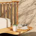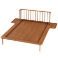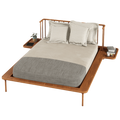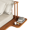 La Cama Plateau presenta un diseño elegante y funcional, con dos mesitas de noche integradas a cada lado de la cama. Está disponible en diferentes tamaños para adaptarse a tus necesidades: