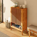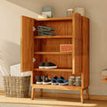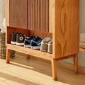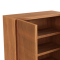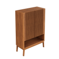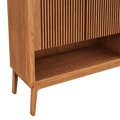 - 3 repisas cubiertas por dos puertas batientes enchapadas en varillas de madera: Cada vez que abres las puertas de la cómoda Scarpe, sentirás como si estuvieras entrando en un bosque encantado. Las varillas de madera, cuidadosamente dispuestas, te recuerdan a los rayos del sol filtrándose entre las hojas de los árboles, creando un juego de luces y sombras que calma tus sentidos.