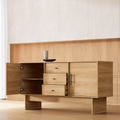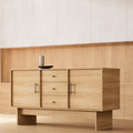 La Credenza Celestica destaca por su diseño moderno y funcional, perfecto para mantener tus espacios organizados y con estilo. Con una combinación de amplios cajones y puertas, ofrece una solución versátil para almacenar desde artículos decorativos hasta utensilios esenciales.