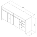 Las medidas de la Credenza porte son de ancho 180 cm, profundidad 47 cm y altura 90 cm, garantizando su adaptabilidad a diversos espacios.
